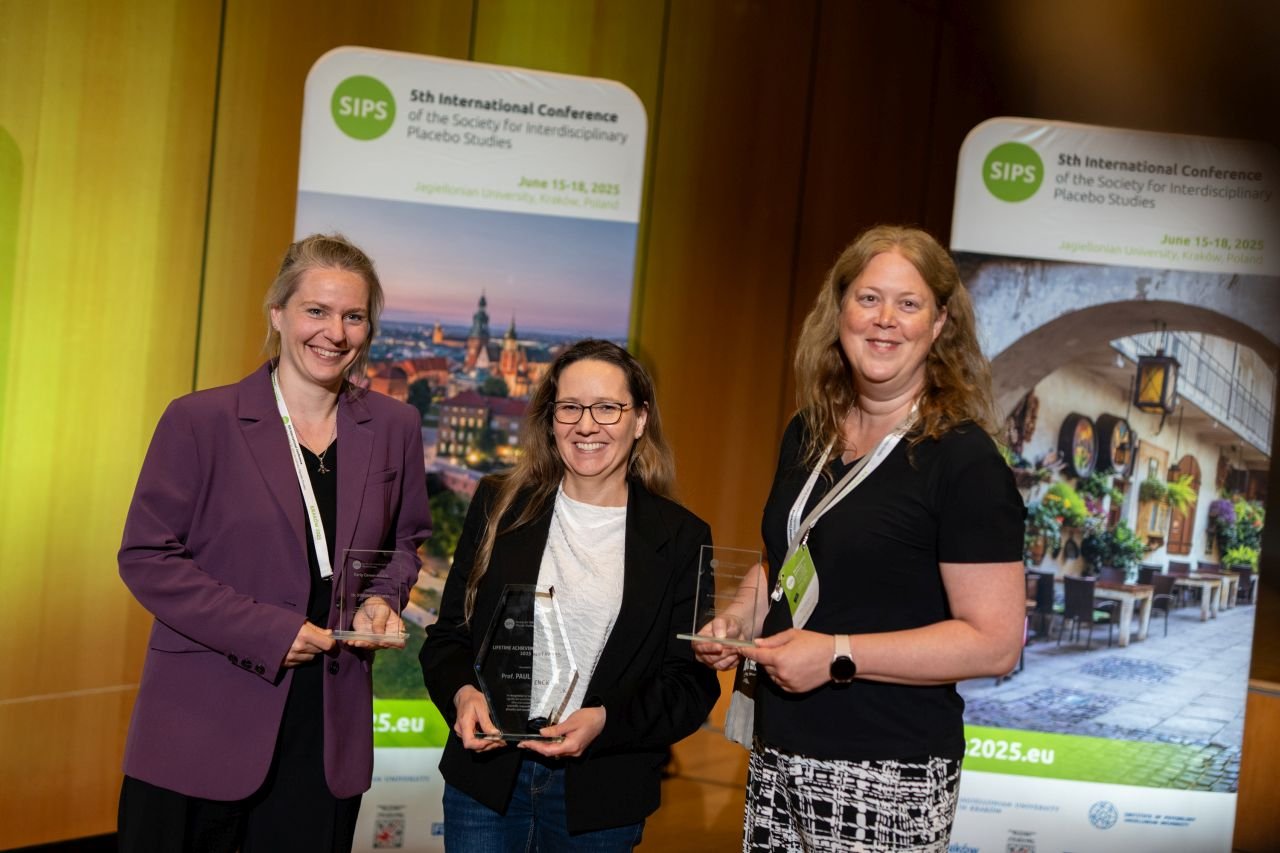 At the conclusion of the conference, the SIPS awards were announced. The Early Career Awards were presented to Stefanie Meeuwis (Tilburg University / Leiden University) and Aleksandrina Skvortsova (Leiden University), in recognition of their promising contributions to the field. The prestigious Lifetime Achievement Award was awarded to Professor Paul Enck (Tübingen University), honoring his decades-long impact on placebo research.